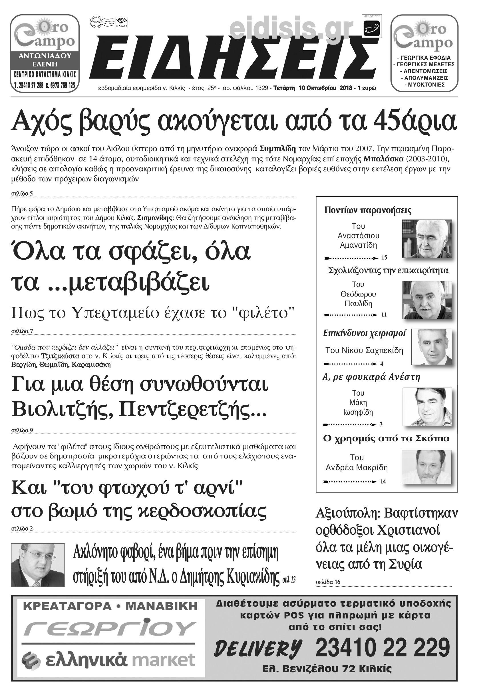 Διαβάστε το νέο πρωτοσέλιδο των ΕΙΔΗΣΕΩΝ του Κιλκίς, της εβδομαδιαίας εφημερίδας του ν. Κιλκίς