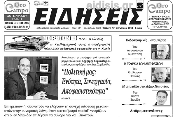 Διαβάστε το νέο πρωτοσέλιδο των ΕΙΔΗΣΕΩΝ του Κιλκίς, της εβδομαδιαίας εφημερίδας του ν. Κιλκίς