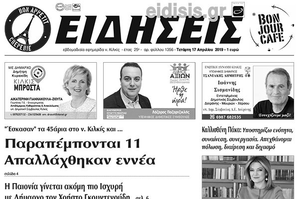 Διαβάστε το νέο πρωτοσέλιδο των ΕΙΔΗΣΕΩΝ του Κιλκίς, της εβδομαδιαίας εφημερίδας του ν. Κιλκίς