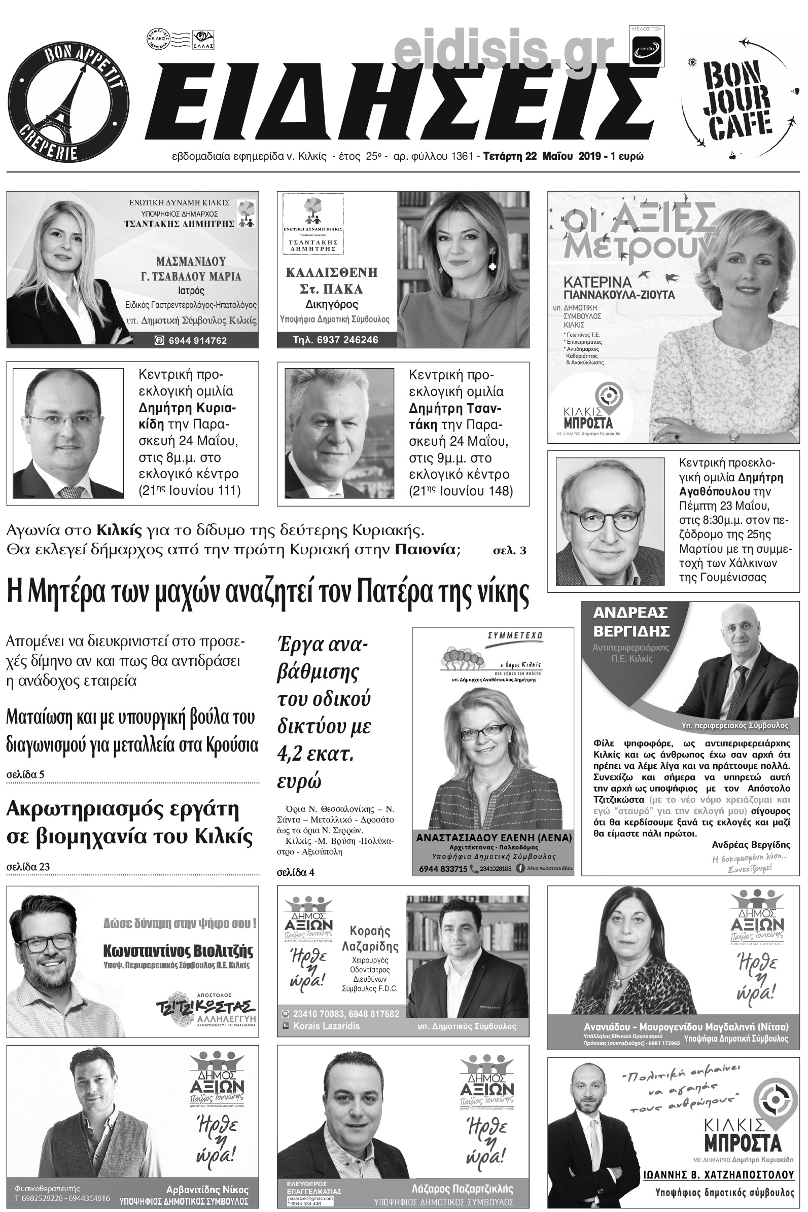 Διαβάστε το νέο πρωτοσέλιδο των ΕΙΔΗΣΕΩΝ του Κιλκίς, της εβδομαδιαίας εφημερίδας του ν. Κιλκίς