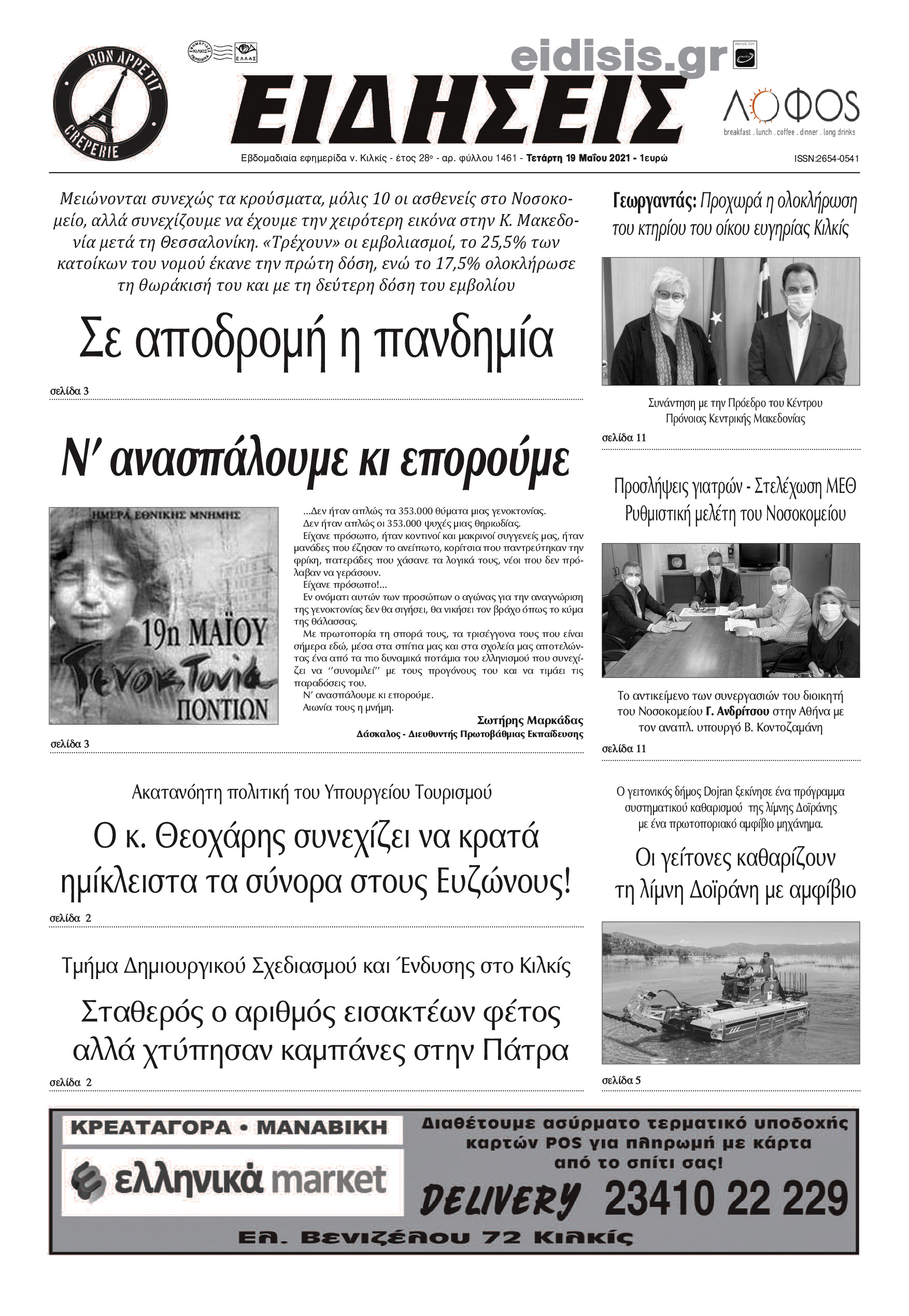 Διαβάστε το νέο πρωτοσέλιδο των ΕΙΔΗΣΕΩΝ του Κιλκίς, της εβδομαδιαίας εφημερίδας του ν. Κιλκίς (19-5-2021)