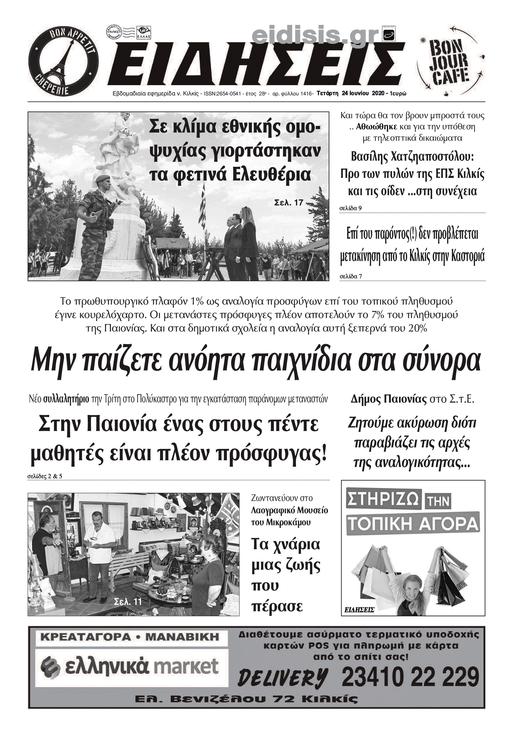 Διαβάστε το νέο πρωτοσέλιδο των ΕΙΔΗΣΕΩΝ του Κιλκίς, της εβδομαδιαίας εφημερίδας του ν. Κιλκίς (24-6-2020)