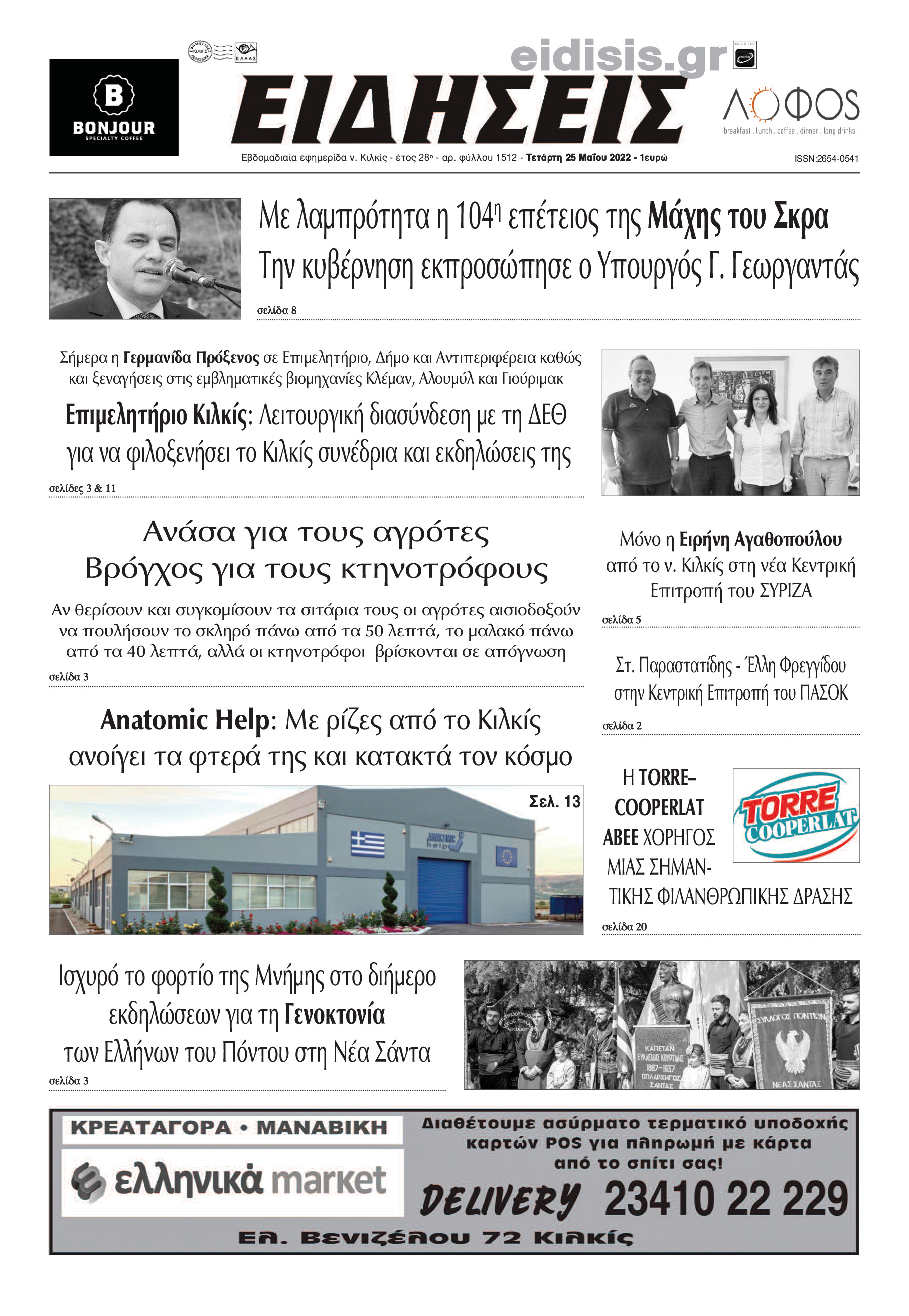 Διαβάστε το νέο πρωτοσέλιδο των ΕΙΔΗΣΕΩΝ του Κιλκίς, της εβδομαδιαίας εφημερίδας του ν. Κιλκίς (25-5-2022)