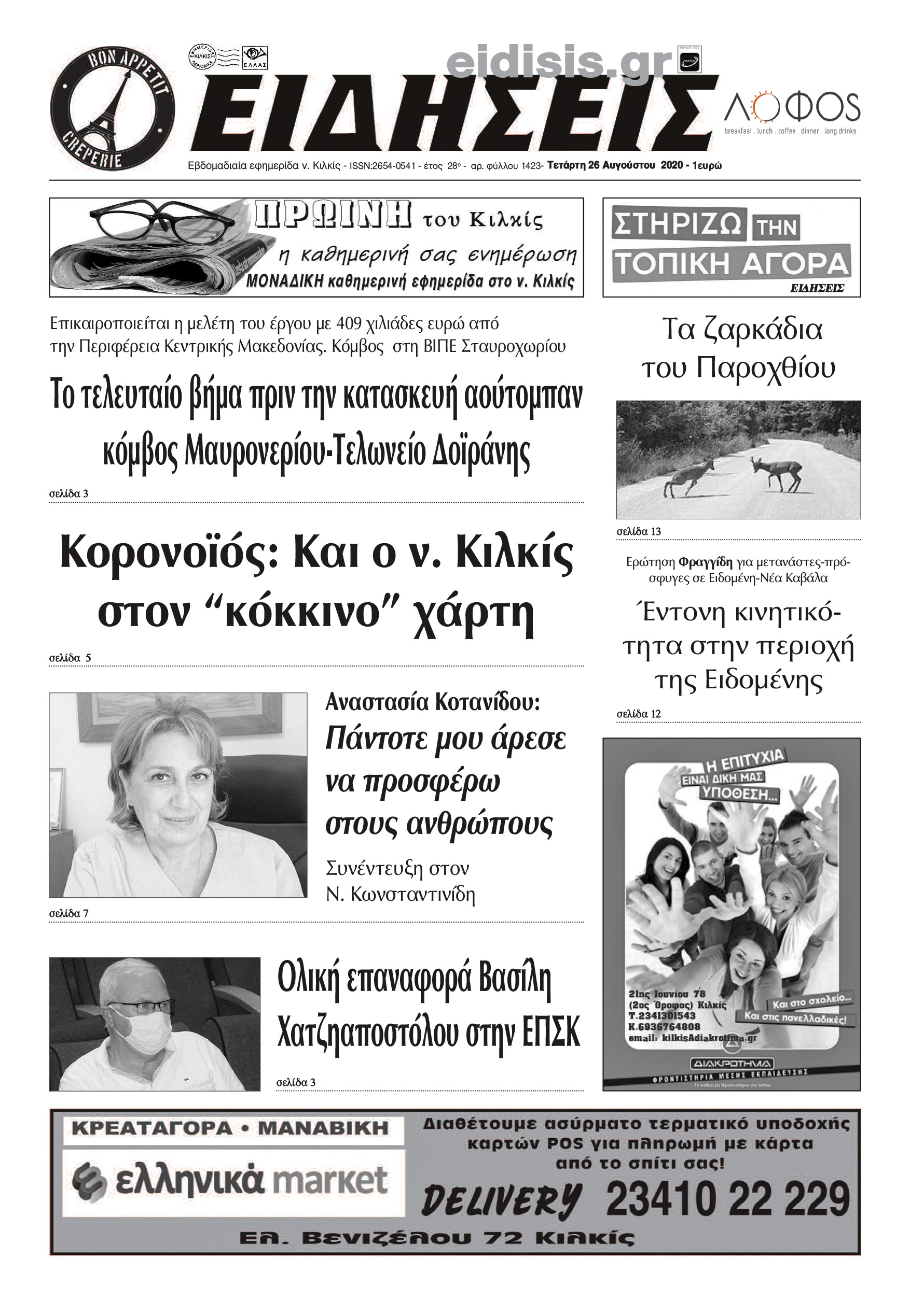 Διαβάστε το νέο πρωτοσέλιδο των ΕΙΔΗΣΕΩΝ του Κιλκίς, της εβδομαδιαίας εφημερίδας του ν. Κιλκίς (26-8-2020)