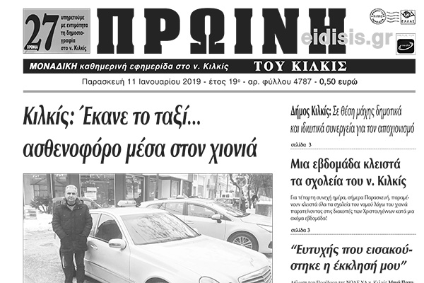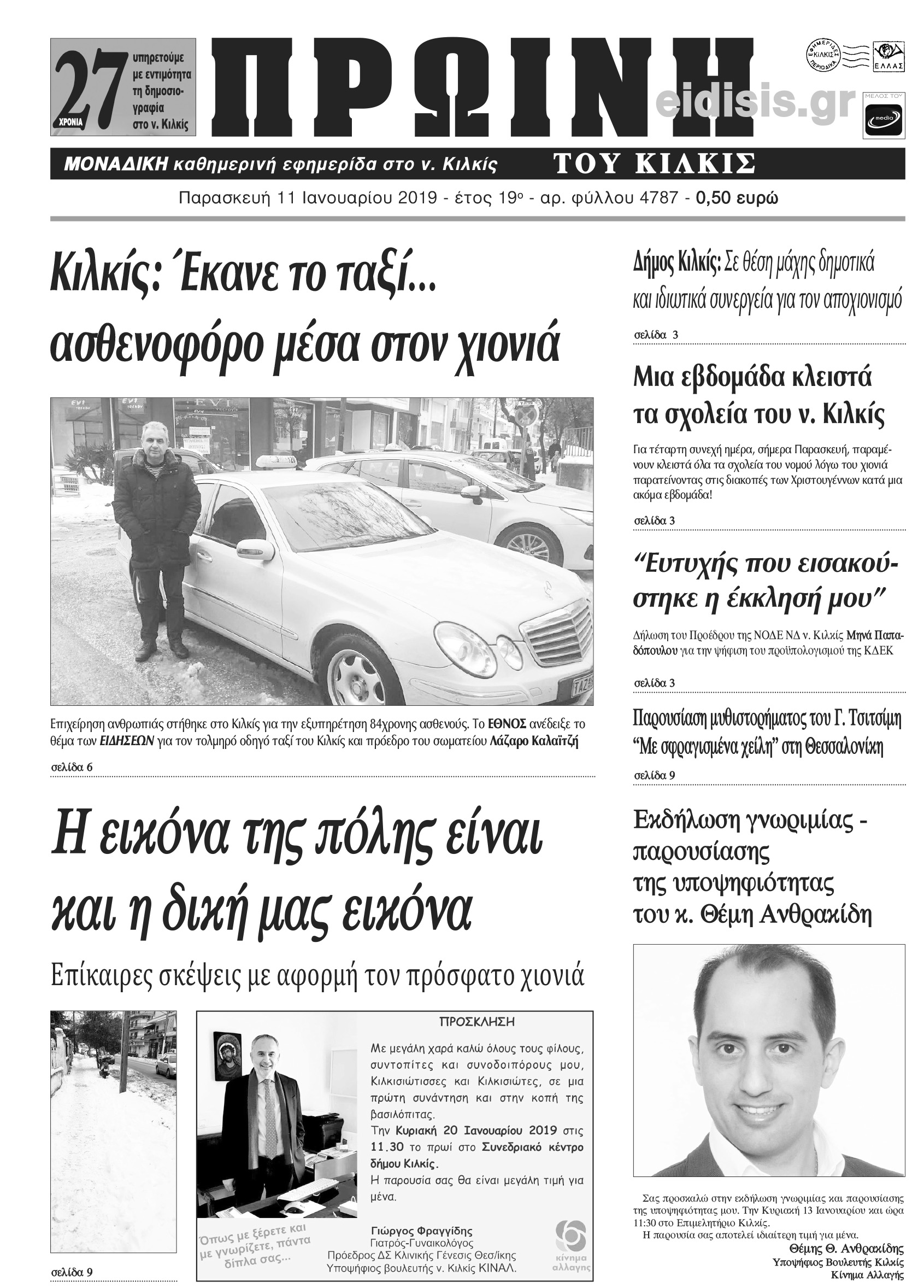Διαβάστε το πρωτοσέλιδο της ΠΡΩΙΝΗΣ του Κιλκίς, μοναδικής καθημερινής εφημερίδας του νομού Κιλκίς