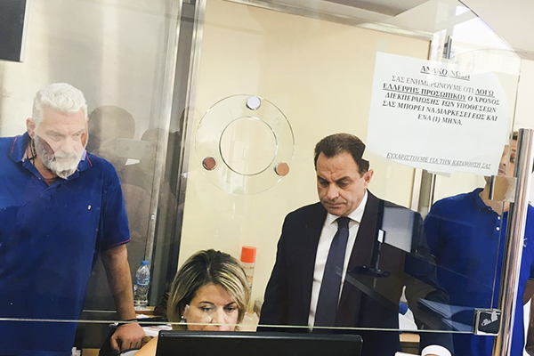 Διαδικασιών Γεώργιος Γεωργαντάς επισκέφτηκε σήμερα, Πέμπτη 1 Αυγούστου, το Κέντρο Εξυπηρέτησης Πολιτών Συντάγματος. Σκοπός της επίσκεψης ήταν ο χηματισμός άμεσης εικόνας σχετικά με τις παρεχόμενες υπηρεσίες και τα ειτουργικά προβλήματα που αναφέρθηκαν από τα συνδικαλιστικά σωματεία κατά την πρόσφατη διαβούλευσή τους με τον Υφυπουργό.