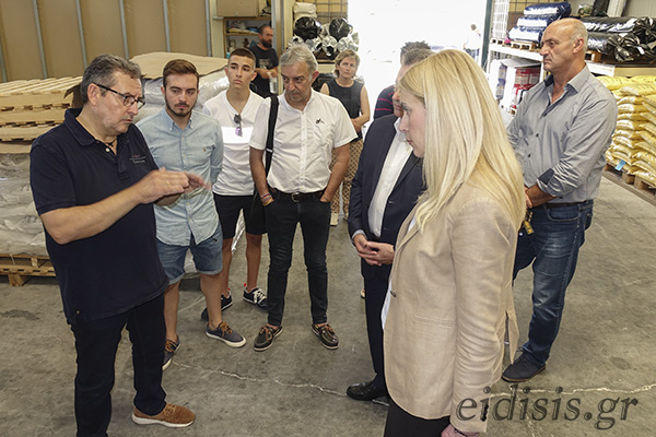 Η υφυπουργός ξεναγήθηκε στις δυο επιχειρήσεις και ενημερώθηκε από τους επικεφαλής των εταιρειών για όσα σχετίζονται με την παραγωγή και εμπορία των προϊόντων τους. Στην Κοινωνική Συνεταιριστική Επιχείρηση Staramaki από τον Στέφανο Καμπέρη και στην Drosvit από τον Δρόσο (Σάκη) Ζιούτα.