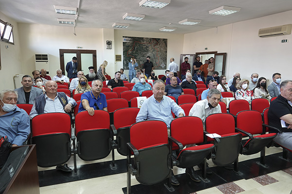 Μετά τη συνέντευξη τύπου ακολούθησε νομαρχιακή συνέλευση με κομματικά στελέχη του νομού, στην αίθουσα του Δημοτικού Συμβουλίου.