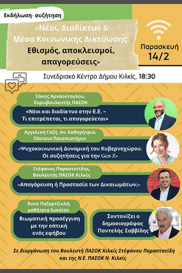 Ημέρα Ασφαλούς Διαδικτύου: Εκδήλωση στο Κιλκίς με τον Στέφανο Παραστατίδη