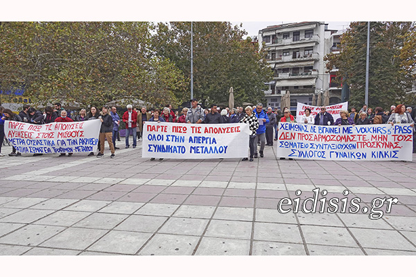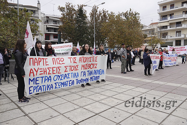 Στην απεργιακή συγκέντρωση μίλησαν: η Μαρία (Ρια) Αλτιπαρμακίδου εκ μέρους του Συλλόγου Γυναικών, ο Σίμος Παντελίδης εκ μέρους της Ενωσης Φοροτεχνικών Ελευθέρων Επαγγελματιών Κιλκίς, ο Κώστας Τσαουσίδης εκ μέρους του Εμπορικού Συλλόγου Κιλκίς, ο Κώστας Σιδηρόπουλος, μέλος του ΔΣ του Συλλόγου Εκπαιδευτικών Πρωτοβάθμιας Παιονίας, η Ελλη Φρεγγίδου, ψυχολόγος και εργαζόμενη στο πρόγραμμα “Βοήθεια στο Σπίτι” του Δήμου Κιλκίς, ο Τάσος Βασιλακάκης, εκ μέρους του Συλλόγου Εργαζομένων ΟΤΑ Κιλκίς-Παιονίας, η Βούλα Κουραλίδου, εκ μέρους των εργαζομένων του προγράμματος “Βοήθεια στο Σπίτι” που έχουν τεθεί σε αναστολή, ο Καραίτης Ιωάννης εκ μέρους του Νομαρχιακού Τμήματος Κιλκίς της ΑΔΕΔΥ, η Στέλλα Γιαννακοπούλου εκ μέρους των ΔΣ εργαζομένων στο Νοσοκομείο Γουμένισσας και ο Πασχάλης Μασούρας εκ μέρους των ΔΣ εργαζομένων στο Νοσοκομείο Κιλκίς.