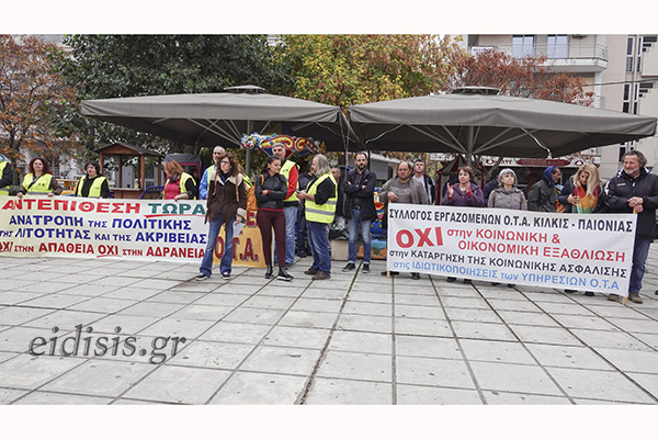 Χαρακτηριστικό είναι το παράδειγμα του συλλόγου εργαζομένων στους ΟΤΑ που η απόφαση του για προσυγκέντρωση στο Δημαρχείο Κιλκίς, την πραγματοποίηση συλλαλητηρίου κατά μήκος της 21ης Ιουνίου συνοδεία οχημάτων του Δήμου Κιλκίς, την ολιγόλεπτη παρουσία τους στη συγκέντρωση της ΑΔΕΔΥ στο Εργατικό Κέντρο Κιλκίς και τελικά τη συμμετοχή των δημοτικών υπαλλήλων στη συγκέντρωση της πλατείας Ειρήνης, έδωσε την ώθηση και σε άλλα σωματεία που δεν είχαν πάρει σχετική απόφαση συμμετοχής και παρευρίσκονταν στη συγκέντρωση της ΑΔΕΔΥ, να τους ακολουθήσουν τελικά στη συγκέντρωση της Πλατείας Ειρήνης, όπου μάλιστα ζήτησαν και πήραν το λόγο.