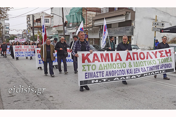 Ακολούθησε πορεία επί της 21ης Ιουνίου που κατέληξε στο Δημαρχείο Κιλκίς. Με συνθήματα όπως “Όχι στην ακρίβεια και την ανεργία, την κρίση να πληρώσει η πλουτοκρατία”, “Τέρμα πια στη σύγχρονη σκλαβιά, σταθερή δουλειά ζητά η εργατιά”, “Πάρτε πίσω τις αναστολές (εργασίας)” και “Χωρίς εσένα γρανάζι δεν γυρνά, εργάτη μπορείς χωρίς αφεντικά” ... οι εργαζόμενοι ένωσαν τις φωνές τους στέλνοντας ηχηρό μήνυμα σε κράτος και εργοδοσία πως δεν συμβιβάζονται και έδωσαν υπόσχεση ότι ο αγώνας θα κλιμακωθεί για την κάλυψη των σύγχρονων λαϊκών αναγκών τους.