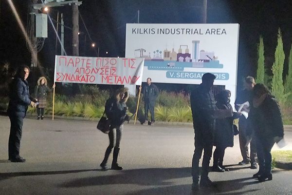 Το Συνδικάτο μετάλλου Κεντρικής Μακεδονίας πραγματοποίησε σήμερα Τρίτη 6/12 στην ΒΙΠΕ Κιλκίς κινητοποίηση με σκοπό να καταγγείλει τις πάνω από 100 απολύσεις του τελευταίου διαστήματος σε ΑΛΟΥΜΥΛ, ΚΛΕΜΑΝ και ΠΥΡΑΜΙΣ.