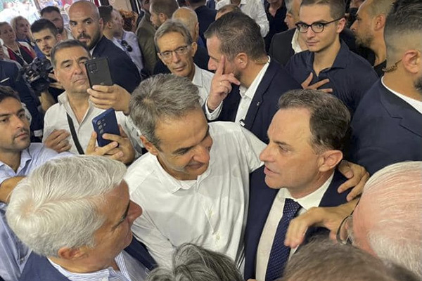 Ο πρωθυπουργός, Κυριάκος Μητσοτάκης, βρέθηκε αγκαλιά με τον υπουργό Αγροτικής Ανάπτυξης και Τροφίμων και βουλευτή Κιλκίς, Γιώργο Γεωργαντά, κατά την επίσκεψή του στο περίπτερο του Υπουργείου.