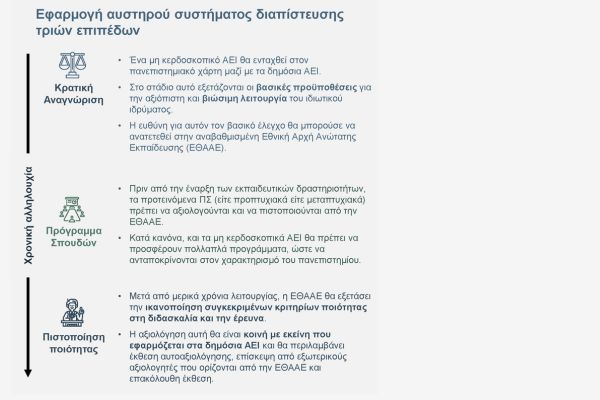 - Διαμόρφωση κοινού πλαισίου διασφάλισης ποιότητας για τα δημόσια και τα μη κρατικά ιδρύματα, ώστε να προστατεύονται ο χρόνος, οι πόροι και η προσπάθεια των φοιτητών.