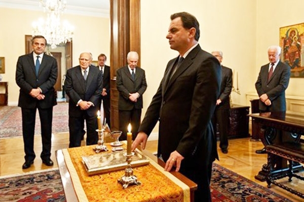 Ο Κιλκισιώτης Βουλευτής ορκίζεται ως Υφυπουργός Παιδείας ενώπιον του Προέδρου της Δημοκρατίας Κάρολου Παπούλια και του Πρωθυπουργού Αντώνη Σαμαρά.