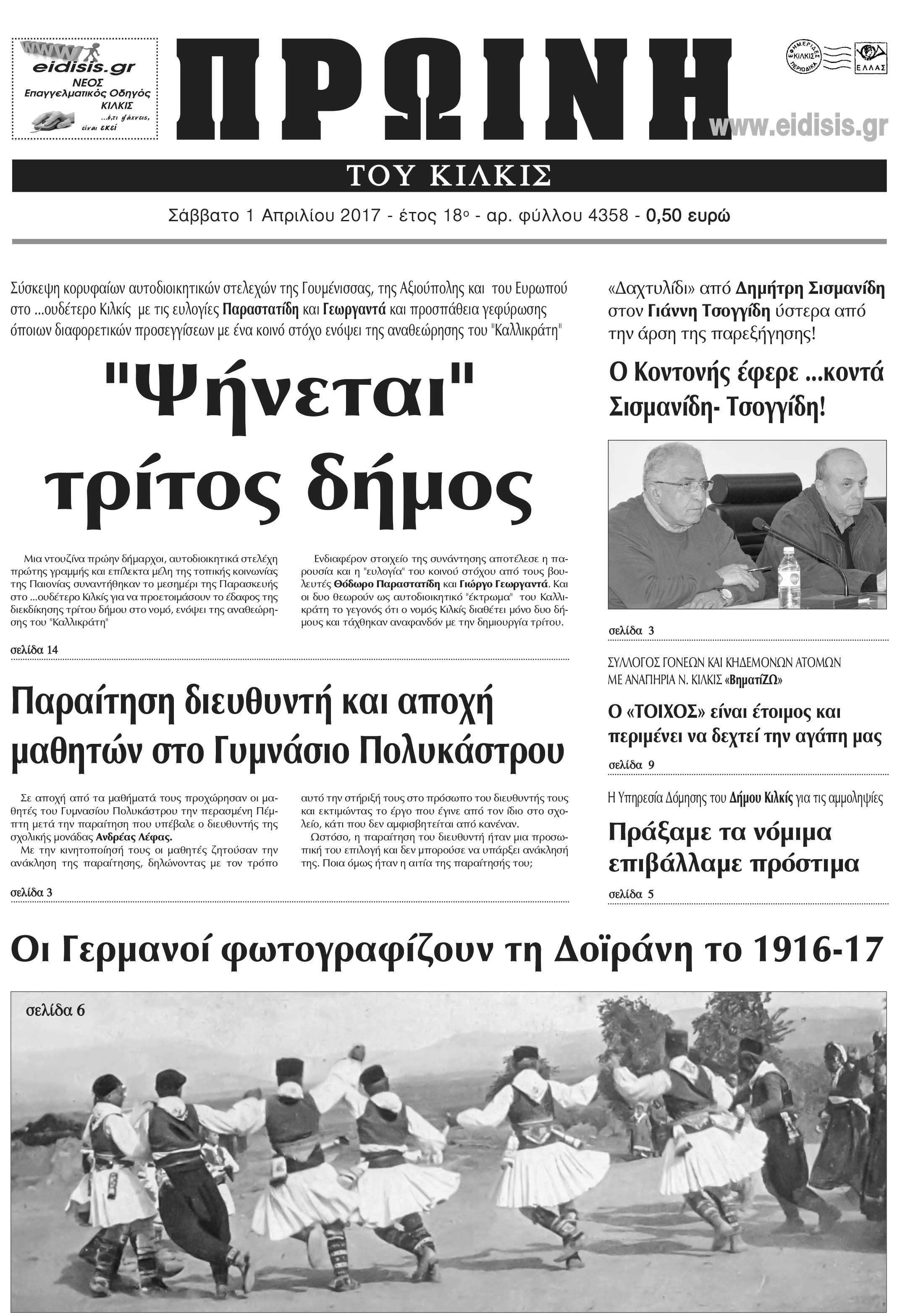 Πέντε χρόνια πριν. Διαβάστε τι έγραφε η καθημερινή εφημερίδα ΠΡΩΙΝΗ του Κιλκίς (1-4-2017)