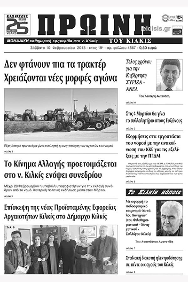 Πέντε χρόνια πριν. Διαβάστε τι έγραφε η καθημερινή εφημερίδα ΠΡΩΙΝΗ του Κιλκίς (10-2-2018)