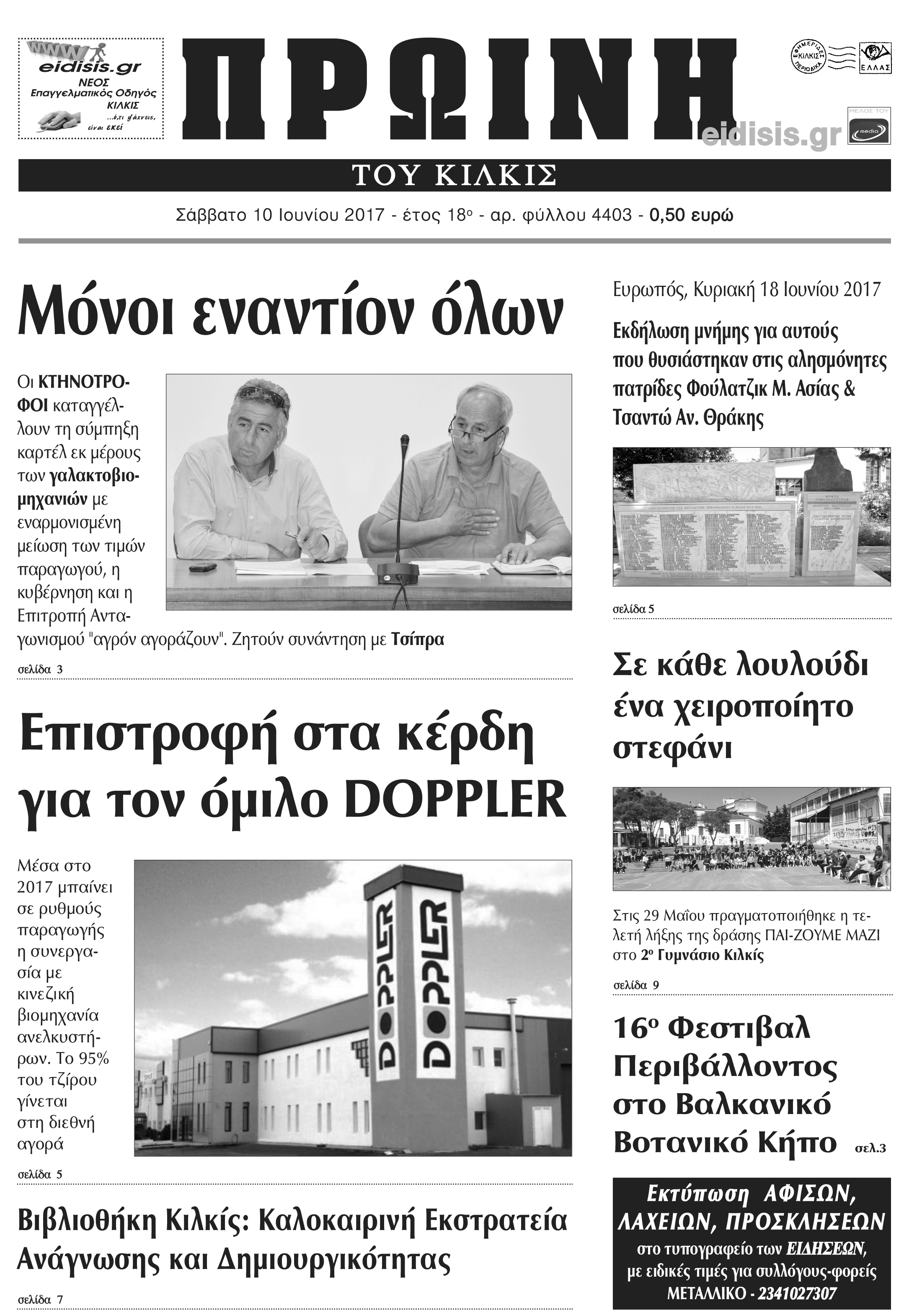Πέντε χρόνια πριν. Διαβάστε τι έγραφε η καθημερινή εφημερίδα ΠΡΩΙΝΗ του Κιλκίς (10-6-2017)