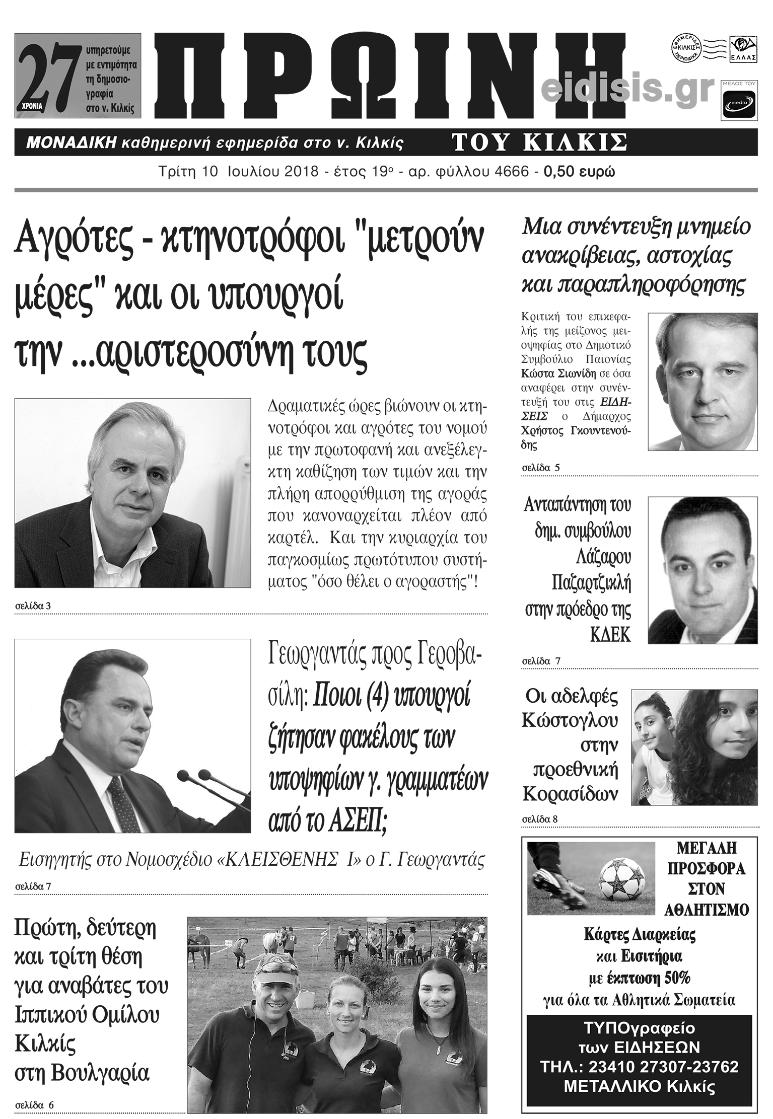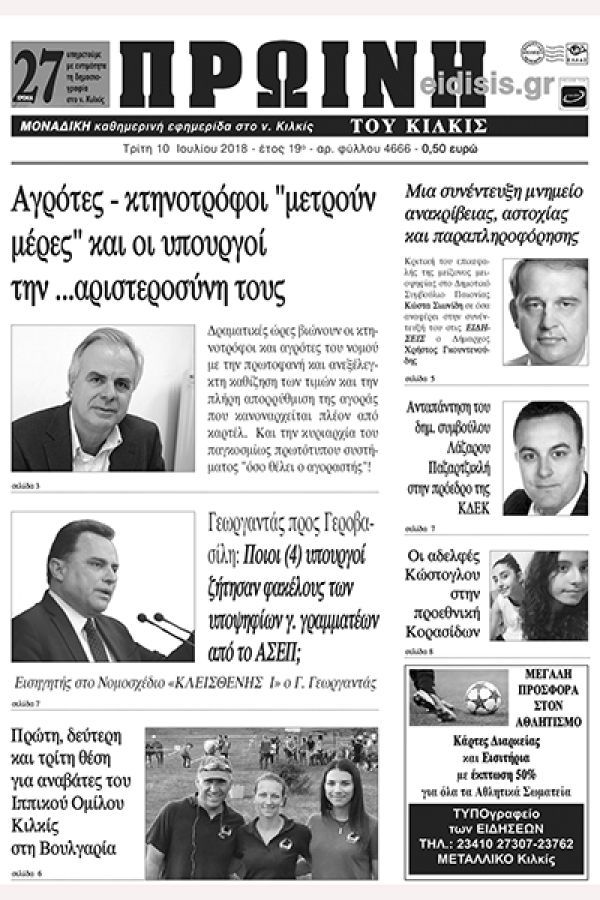 Πέντε χρόνια πριν. Διαβάστε τι έγραφε η καθημερινή εφημερίδα ΠΡΩΙΝΗ του Κιλκίς (10-7-2018)