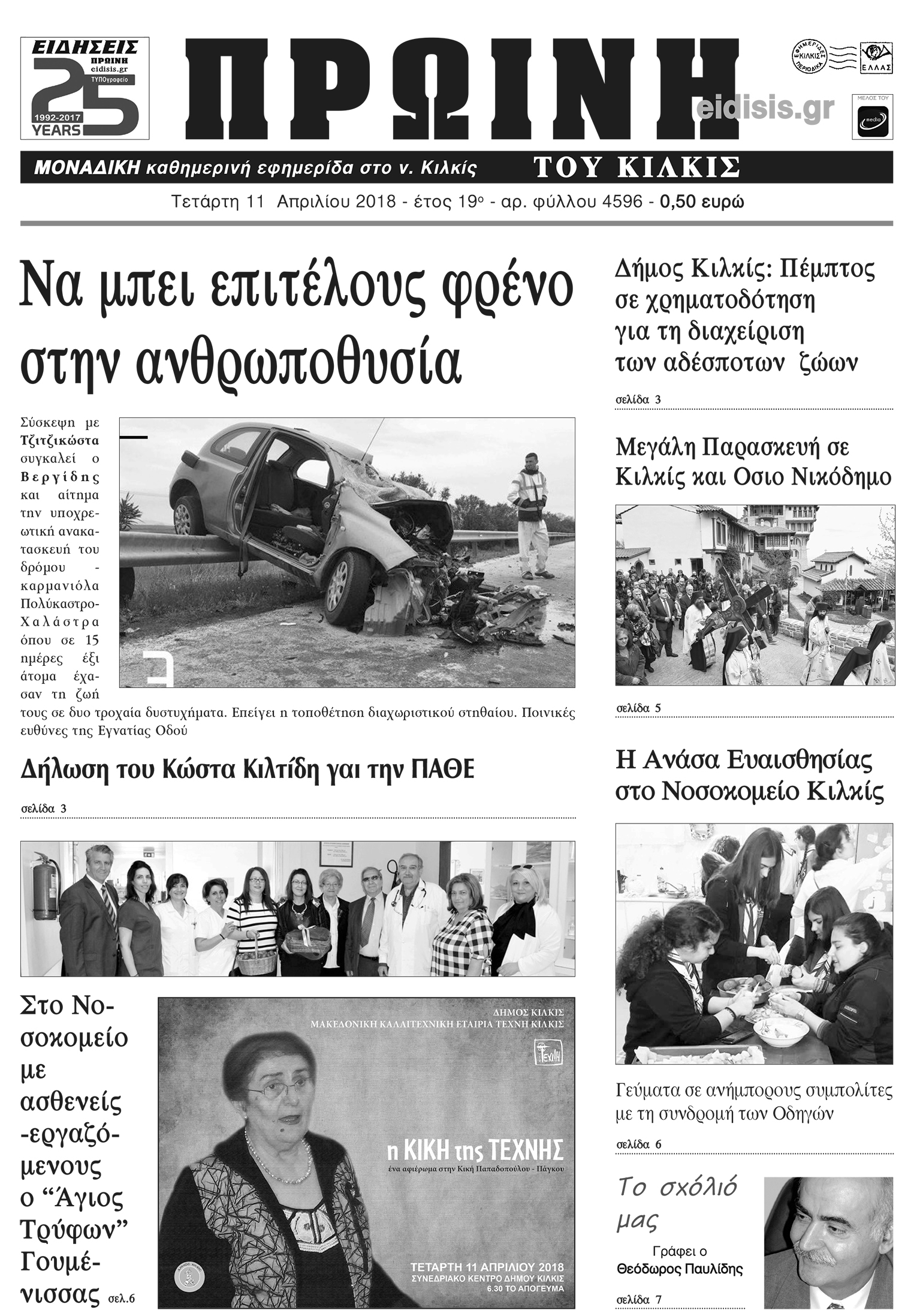 Πέντε χρόνια πριν. Διαβάστε τι έγραφε η καθημερινή εφημερίδα ΠΡΩΙΝΗ του Κιλκίς (11-4-2018)