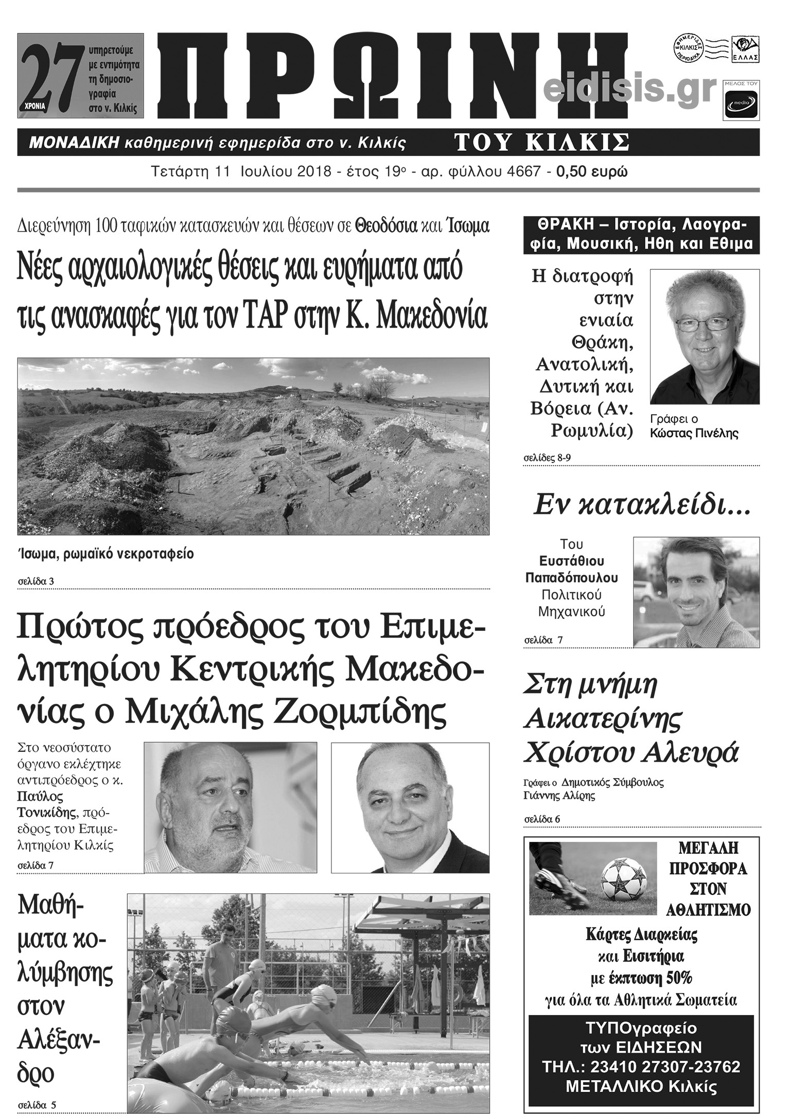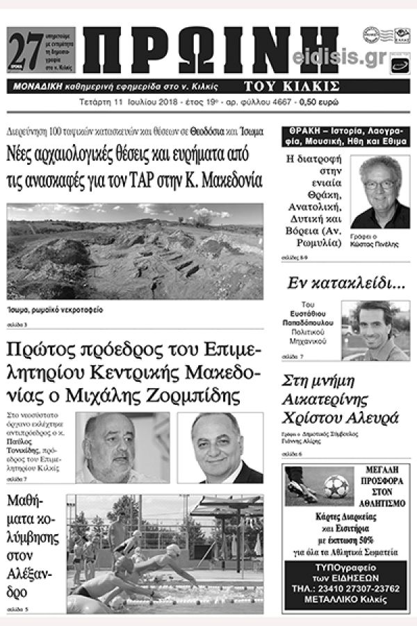 Πέντε χρόνια πριν. Διαβάστε τι έγραφε η καθημερινή εφημερίδα ΠΡΩΙΝΗ του Κιλκίς (11-7-2018)