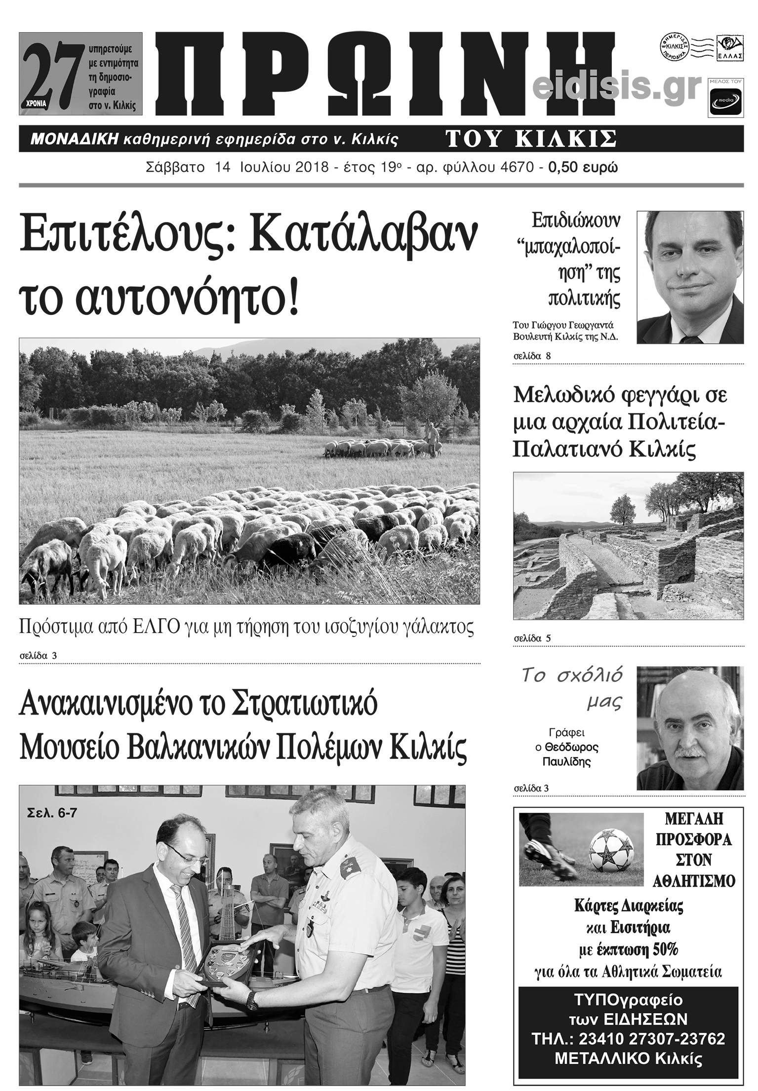 Πέντε χρόνια πριν. Διαβάστε τι έγραφε η καθημερινή εφημερίδα ΠΡΩΙΝΗ του Κιλκίς (14-7-2018)