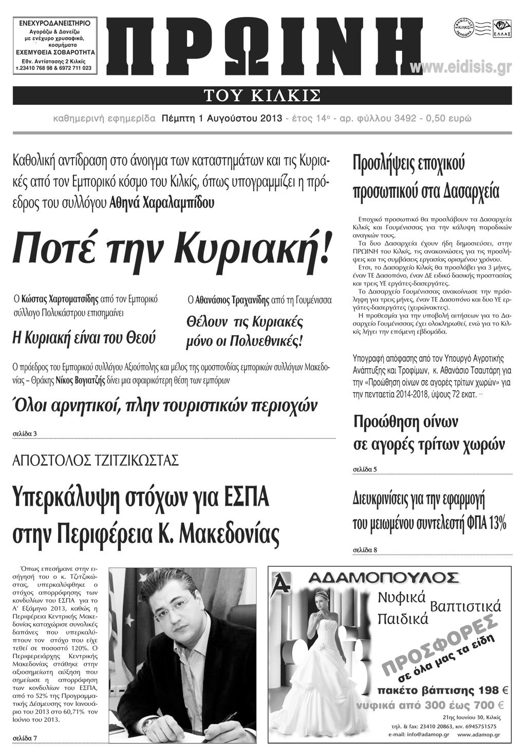 Πέντε χρόνια πριν. Διαβάστε τι έγραφε η καθημερινή εφημερίδα ΠΡΩΙΝΗ του Κιλκίς