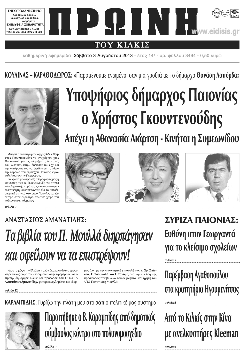 Πέντε χρόνια πριν. Διαβάστε τι έγραφε η καθημερινή εφημερίδα ΠΡΩΙΝΗ του Κιλκίς