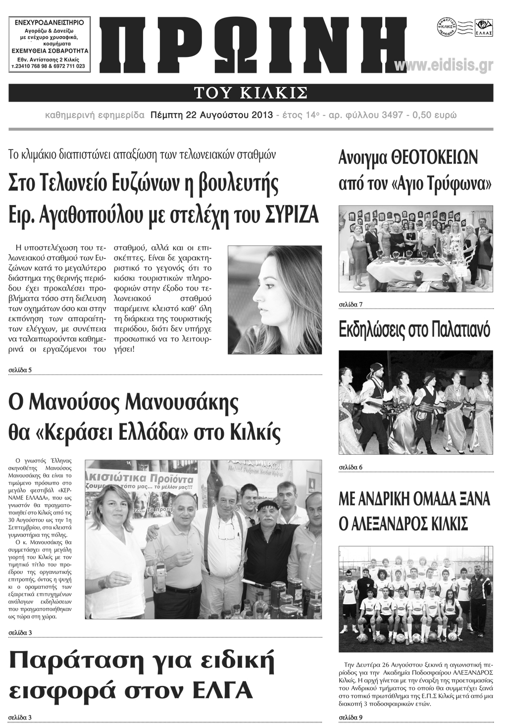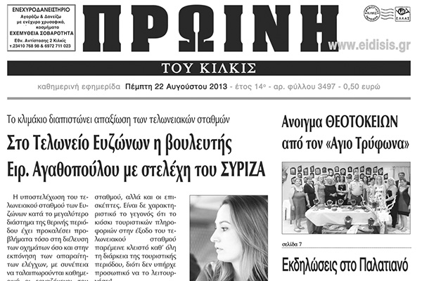 Πέντε χρόνια πριν. Διαβάστε τι έγραφε η καθημερινή εφημερίδα ΠΡΩΙΝΗ του Κιλκίς