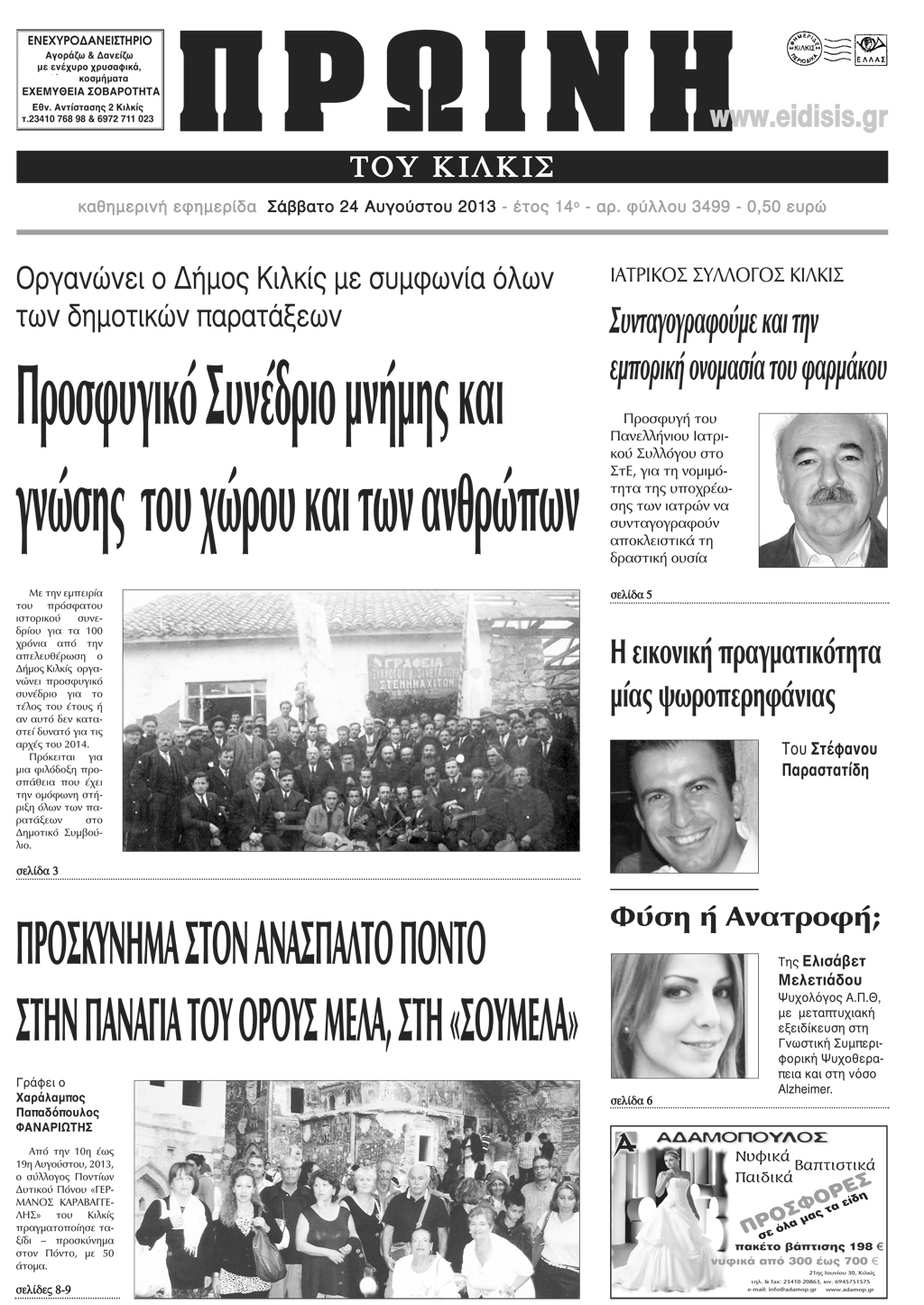 Πέντε χρόνια πριν. Διαβάστε τι έγραφε η καθημερινή εφημερίδα ΠΡΩΙΝΗ του Κιλκίς