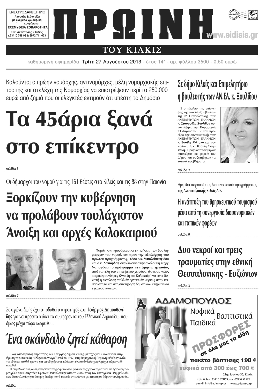 Πέντε χρόνια πριν. Διαβάστε τι έγραφε η καθημερινή εφημερίδα ΠΡΩΙΝΗ του Κιλκίς