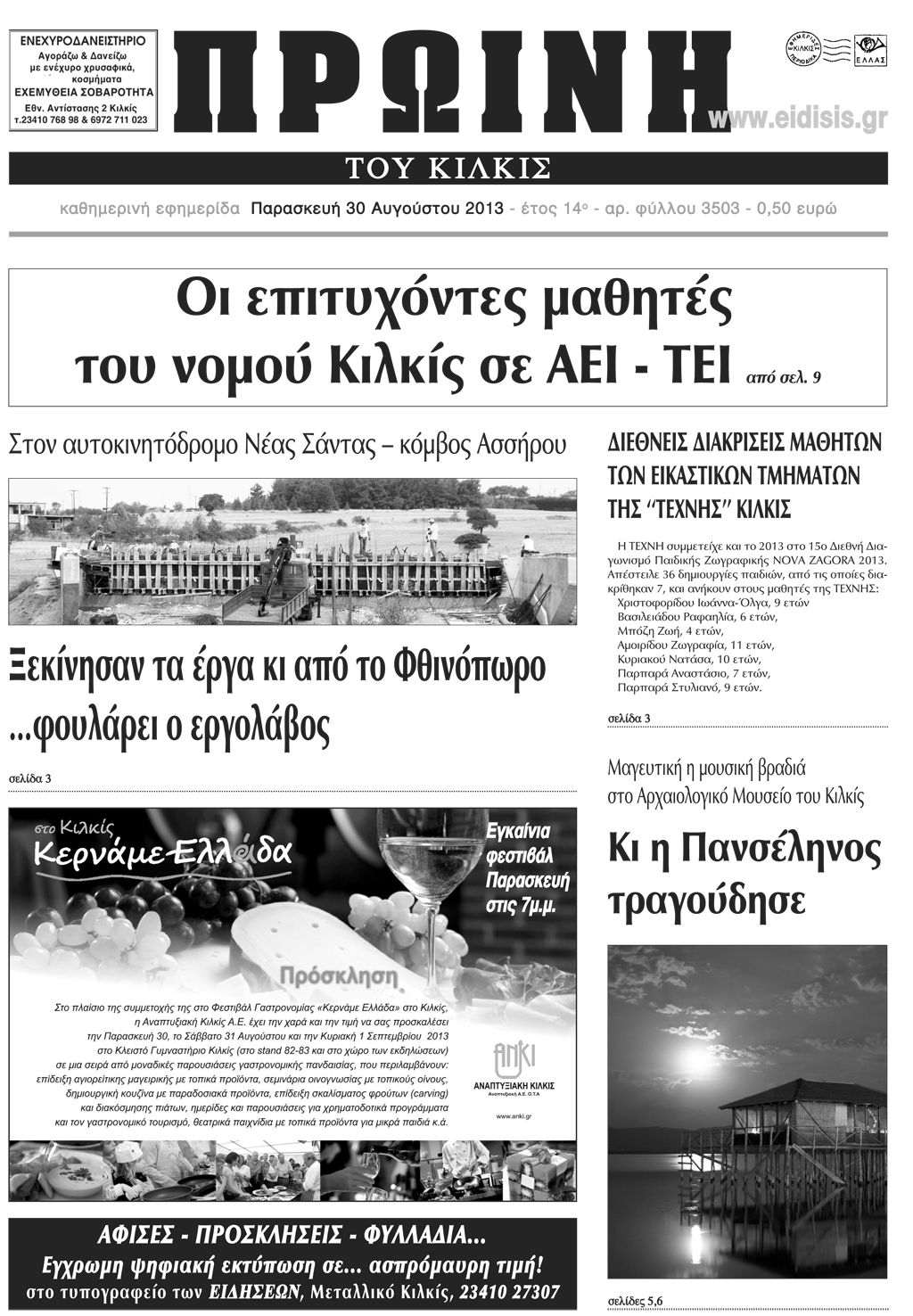 Πέντε χρόνια πριν. Διαβάστε τι έγραφε η καθημερινή εφημερίδα ΠΡΩΙΝΗ του Κιλκίς