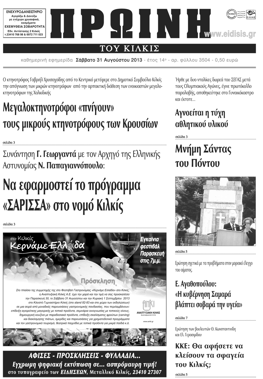 Πέντε χρόνια πριν. Διαβάστε τι έγραφε η καθημερινή εφημερίδα ΠΡΩΙΝΗ του Κιλκίς