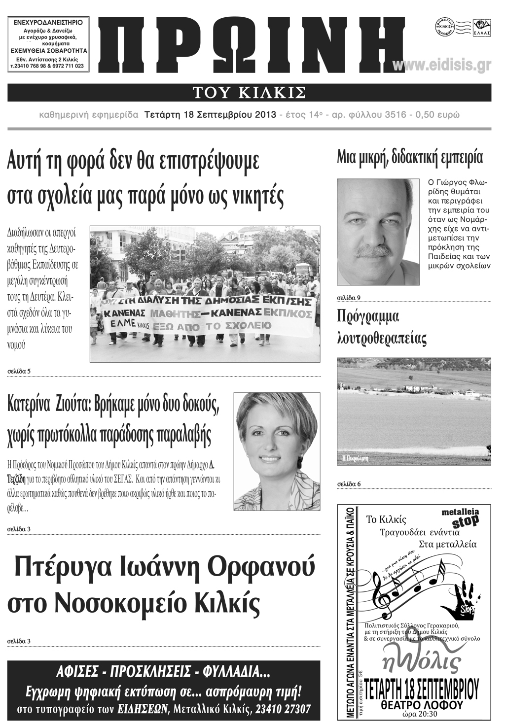 Πέντε χρόνια πριν. Διαβάστε τι έγραφε η καθημερινή εφημερίδα ΠΡΩΙΝΗ του Κιλκίς