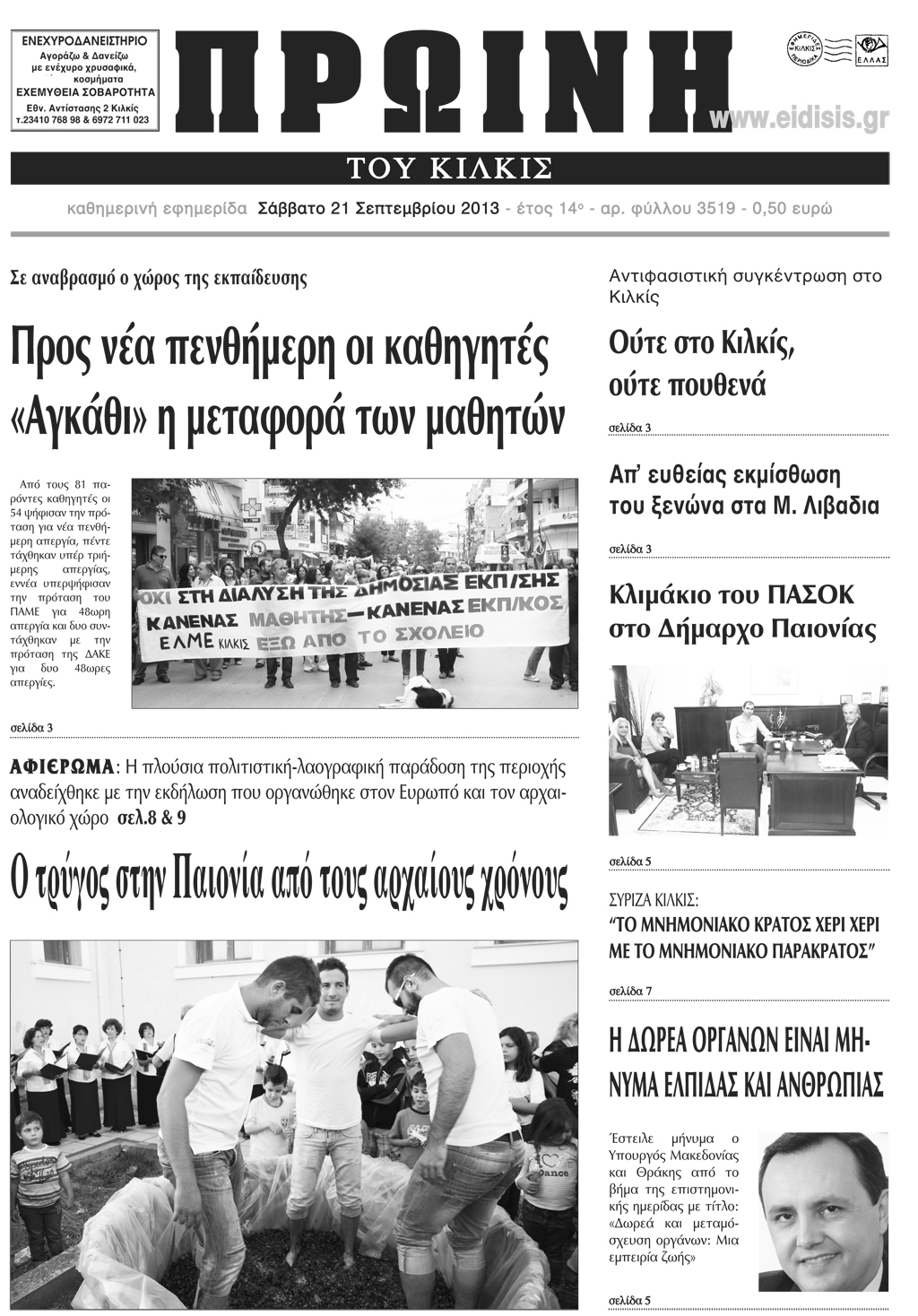 Πέντε χρόνια πριν. Διαβάστε τι έγραφε η καθημερινή εφημερίδα ΠΡΩΙΝΗ του Κιλκίς