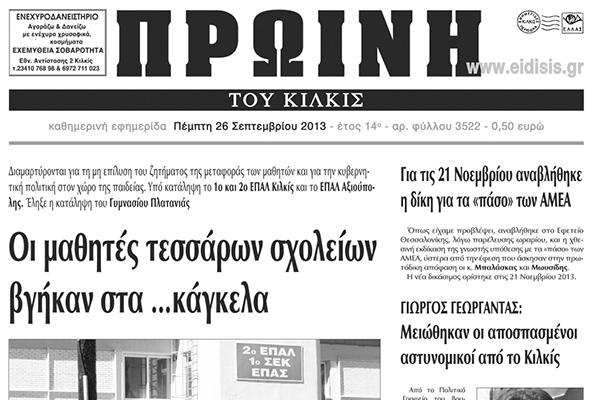 Πέντε χρόνια πριν. Διαβάστε τι έγραφε η καθημερινή εφημερίδα ΠΡΩΙΝΗ του Κιλκίς