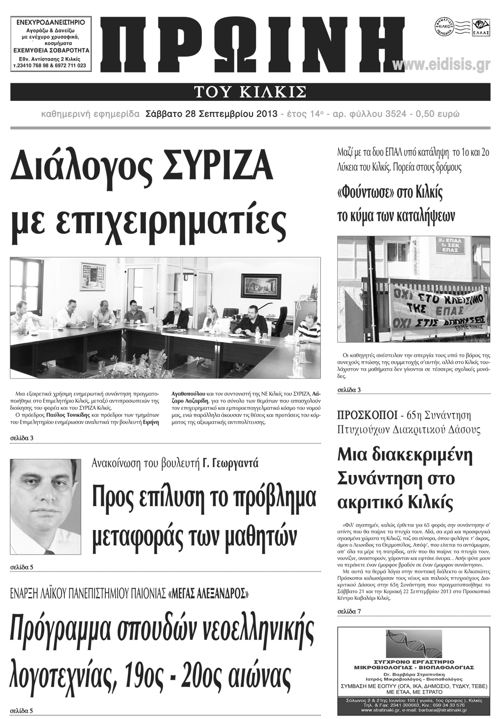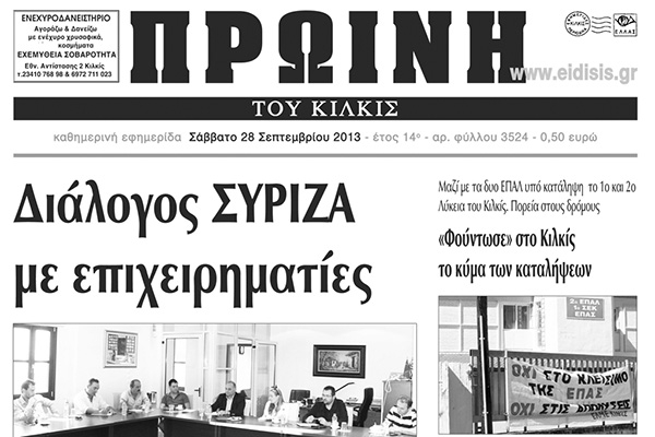 Πέντε χρόνια πριν. Διαβάστε τι έγραφε η καθημερινή εφημερίδα ΠΡΩΙΝΗ του Κιλκίς