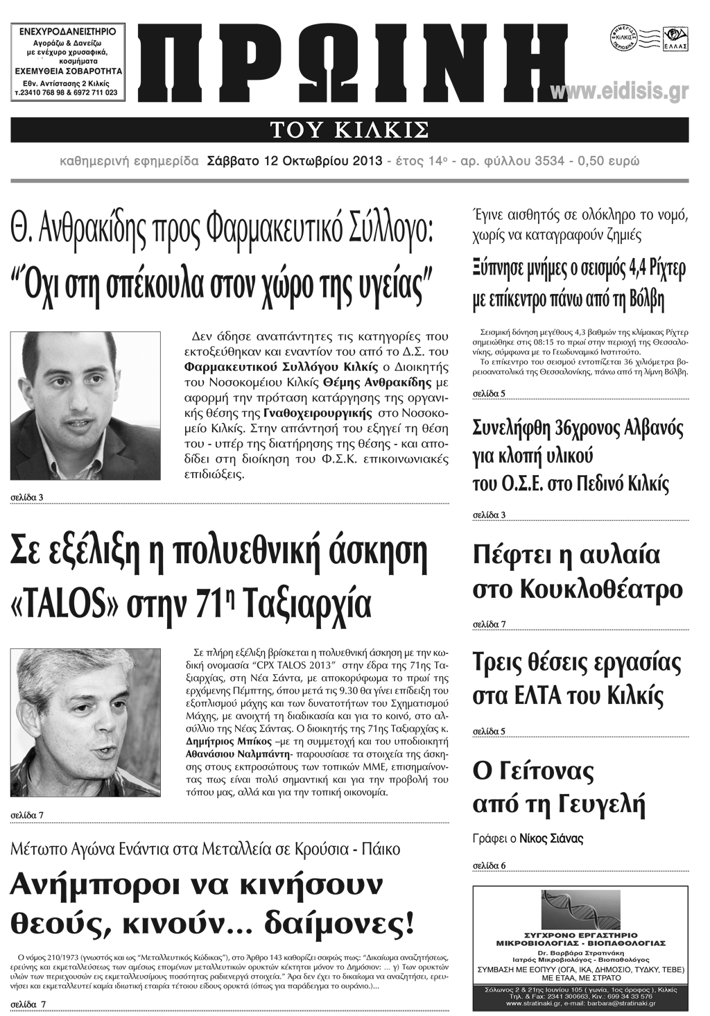 Πέντε χρόνια πριν. Διαβάστε τι έγραφε η καθημερινή εφημερίδα ΠΡΩΙΝΗ του Κιλκίς