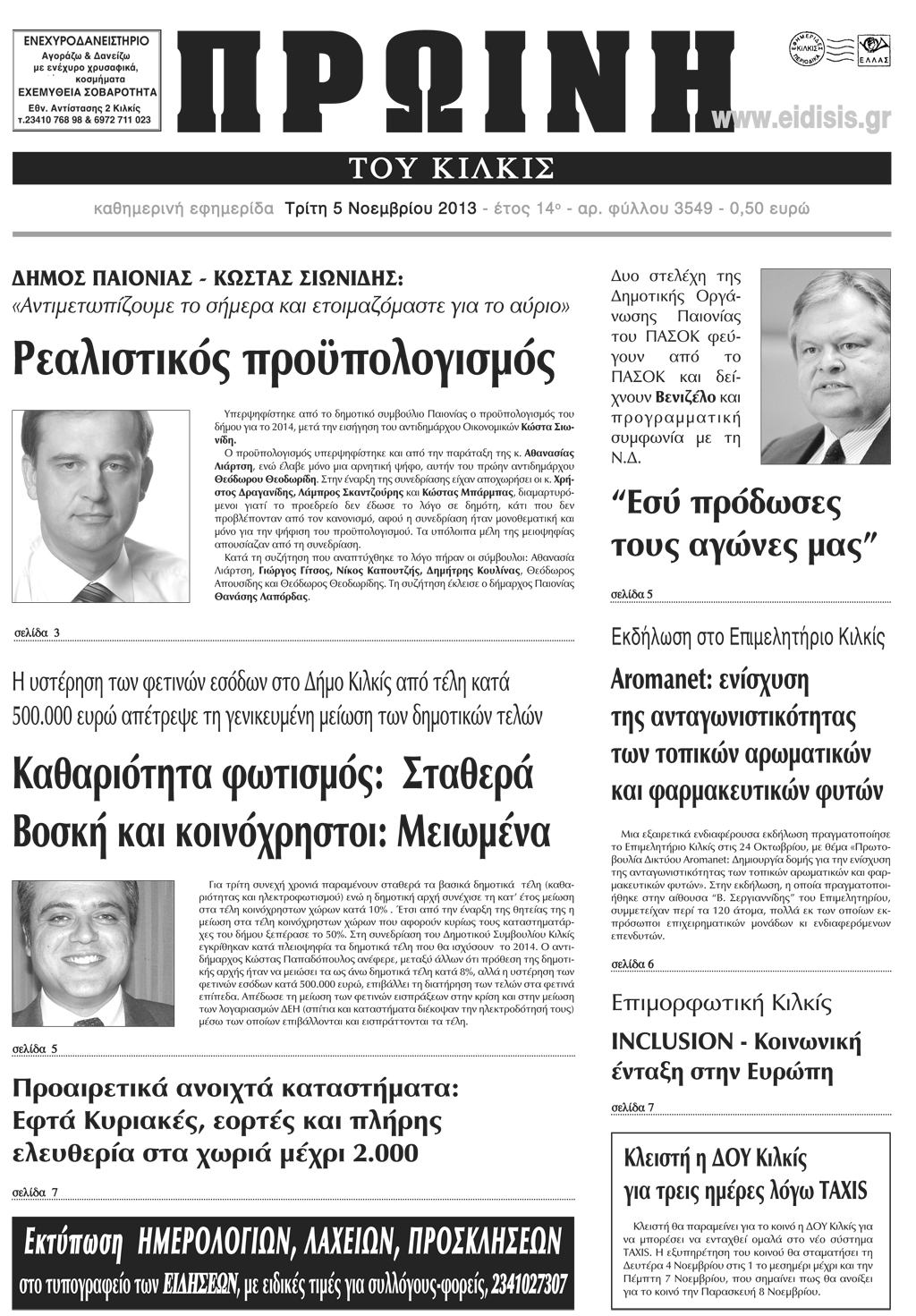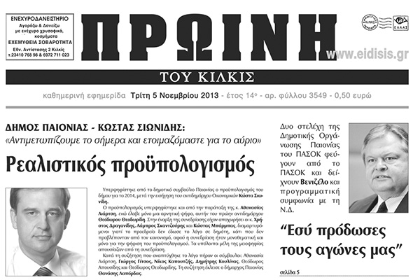 Πέντε χρόνια πριν. Διαβάστε τι έγραφε η καθημερινή εφημερίδα ΠΡΩΙΝΗ του Κιλκίς