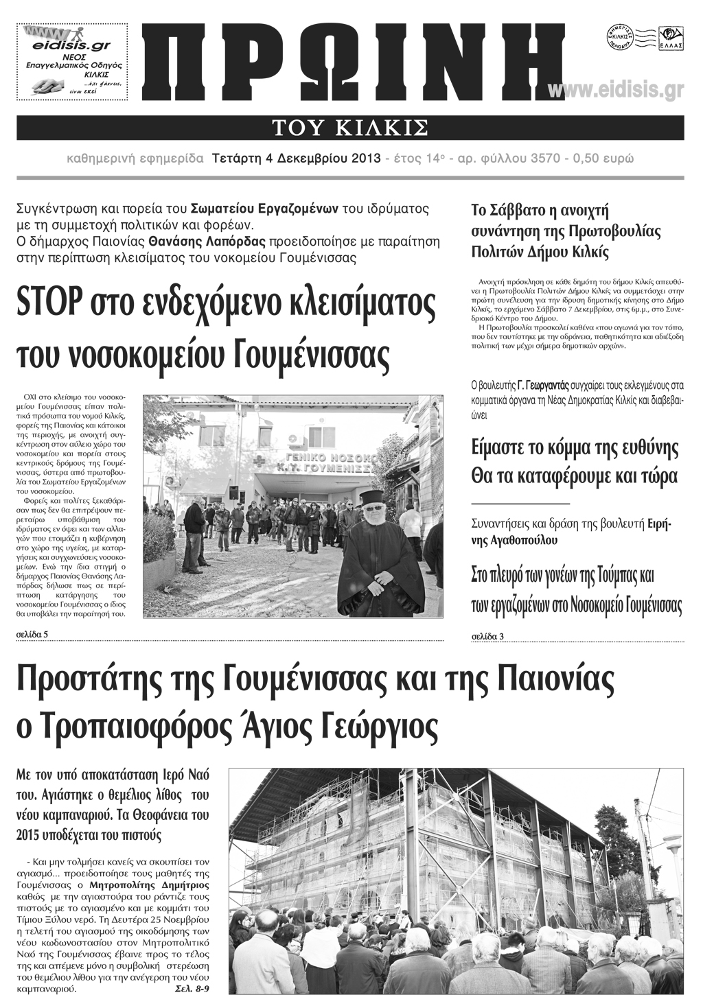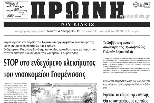 Πέντε χρόνια πριν. Διαβάστε τι έγραφε η καθημερινή εφημερίδα ΠΡΩΙΝΗ του Κιλκίς