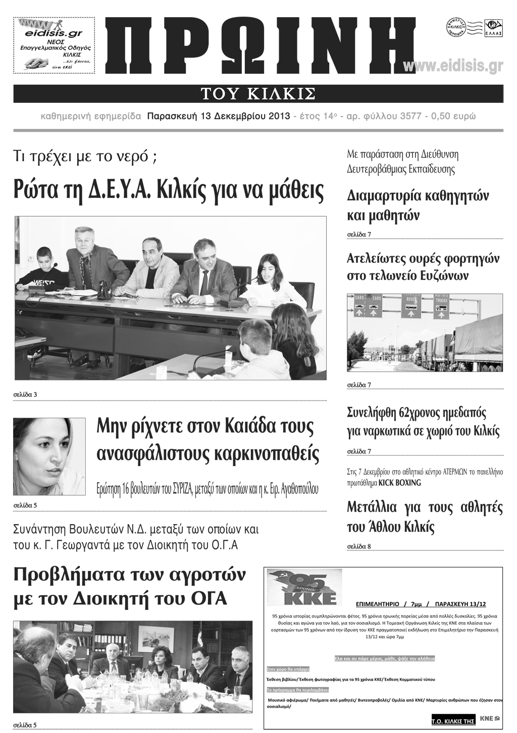 Πέντε χρόνια πριν. Διαβάστε τι έγραφε η καθημερινή εφημερίδα ΠΡΩΙΝΗ του Κιλκίς