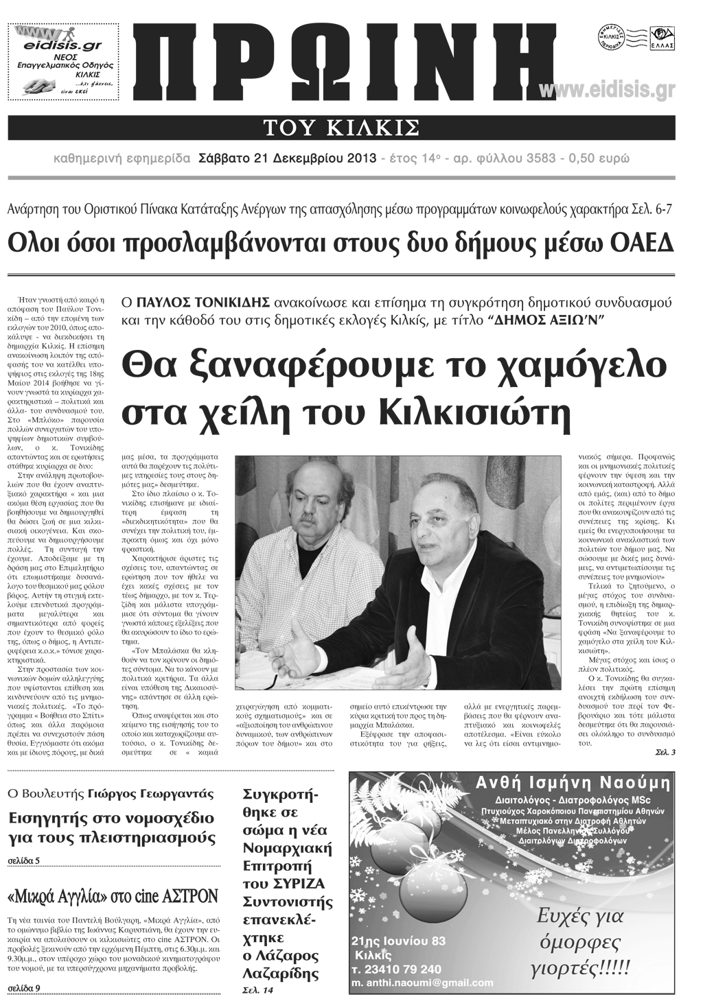 Πέντε χρόνια πριν. Διαβάστε τι έγραφε η καθημερινή εφημερίδα ΠΡΩΙΝΗ του Κιλκίς