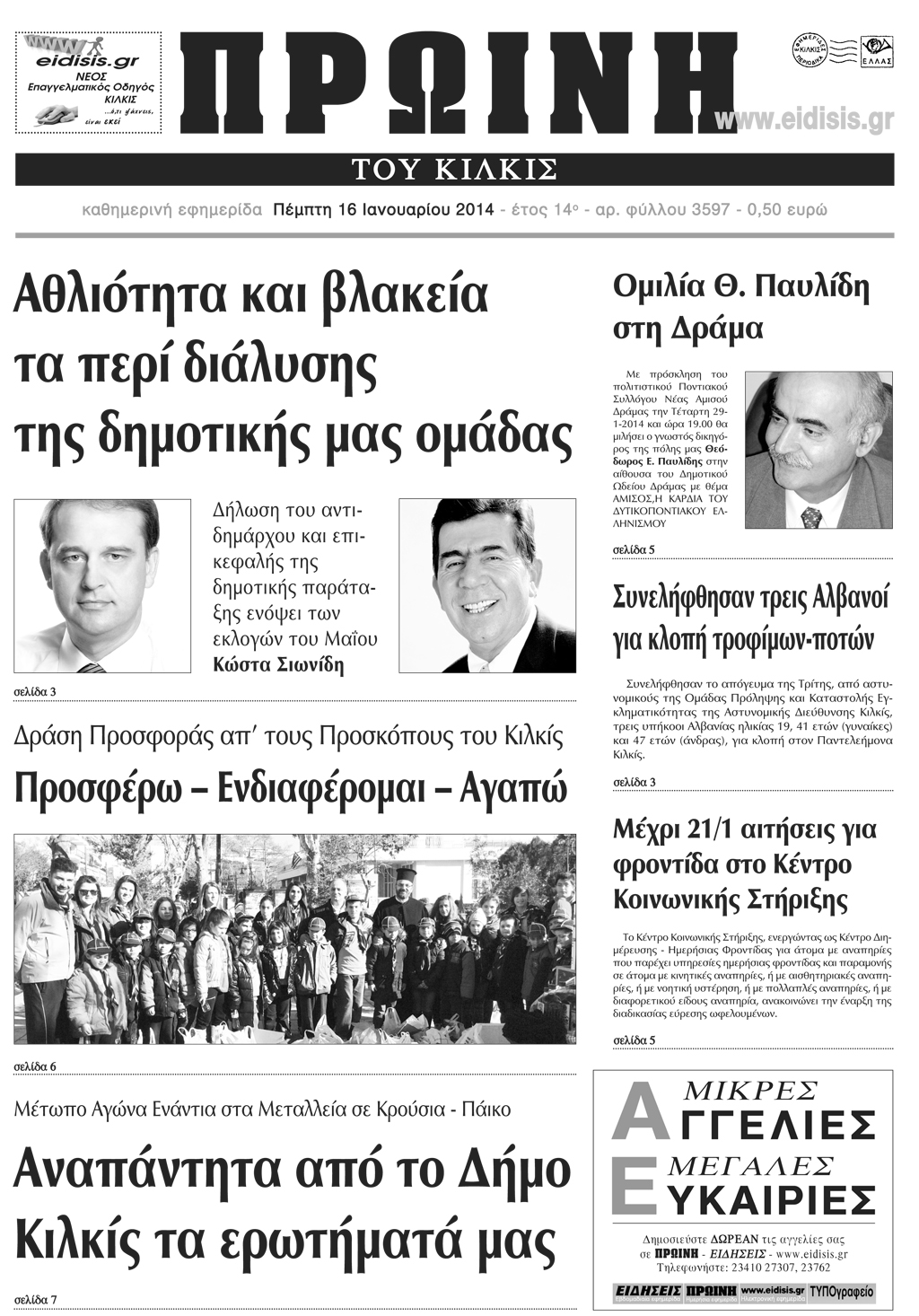 Πέντε χρόνια πριν. Διαβάστε τι έγραφε η καθημερινή εφημερίδα ΠΡΩΙΝΗ του Κιλκίς