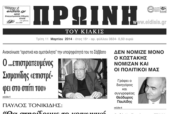 Πέντε χρόνια πριν. Διαβάστε τι έγραφε η καθημερινή εφημερίδα ΠΡΩΙΝΗ του Κιλκίς