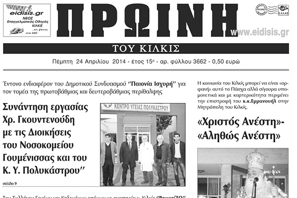 Πέντε χρόνια πριν. Διαβάστε τι έγραφε η καθημερινή εφημερίδα ΠΡΩΙΝΗ του Κιλκίς