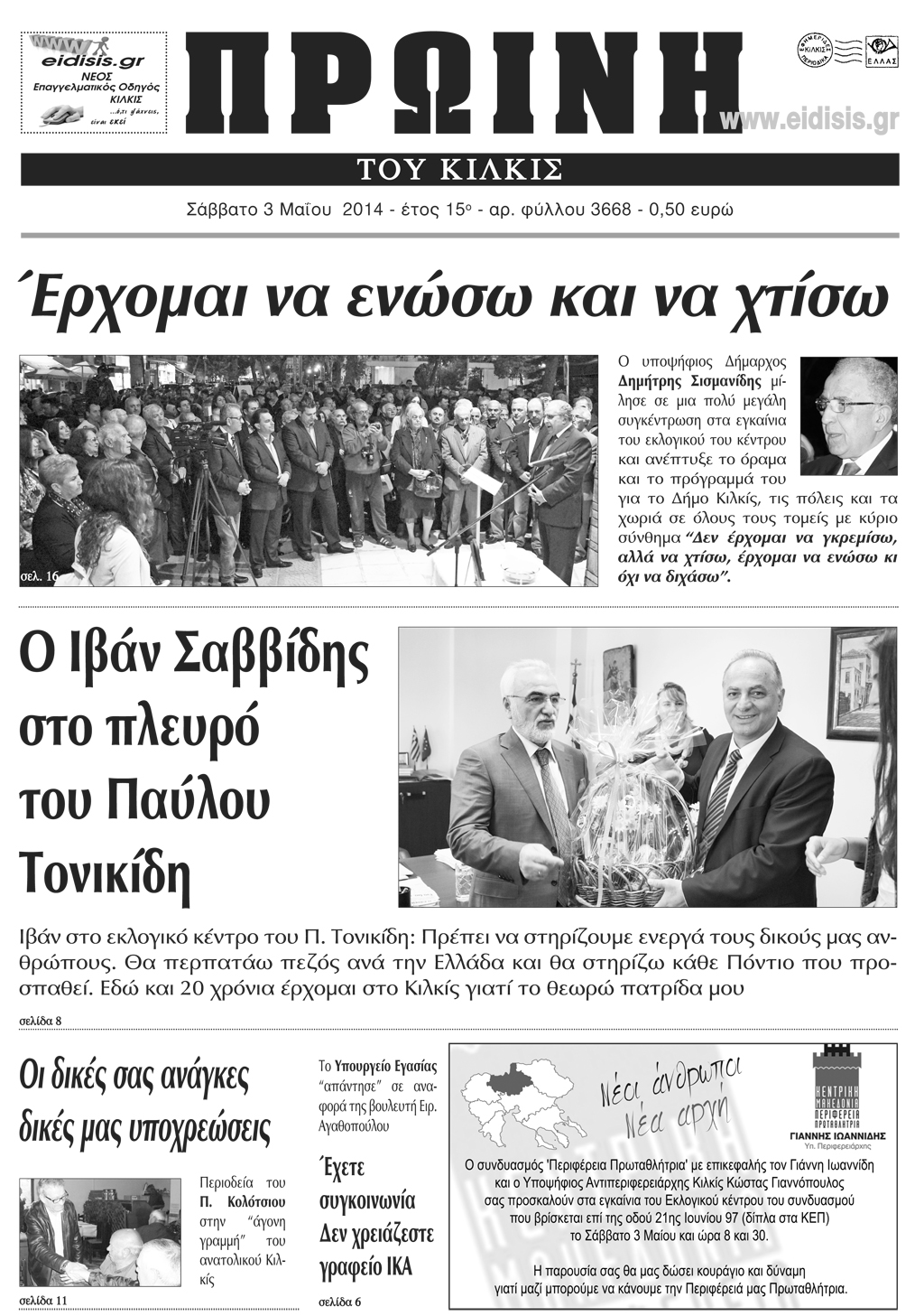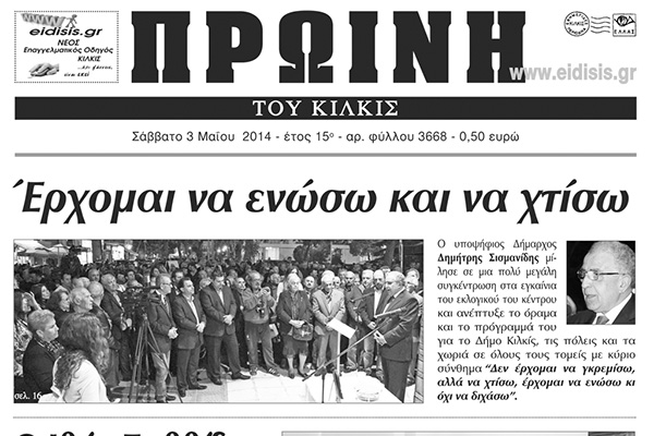 Πέντε χρόνια πριν. Διαβάστε τι έγραφε η καθημερινή εφημερίδα ΠΡΩΙΝΗ του Κιλκίς