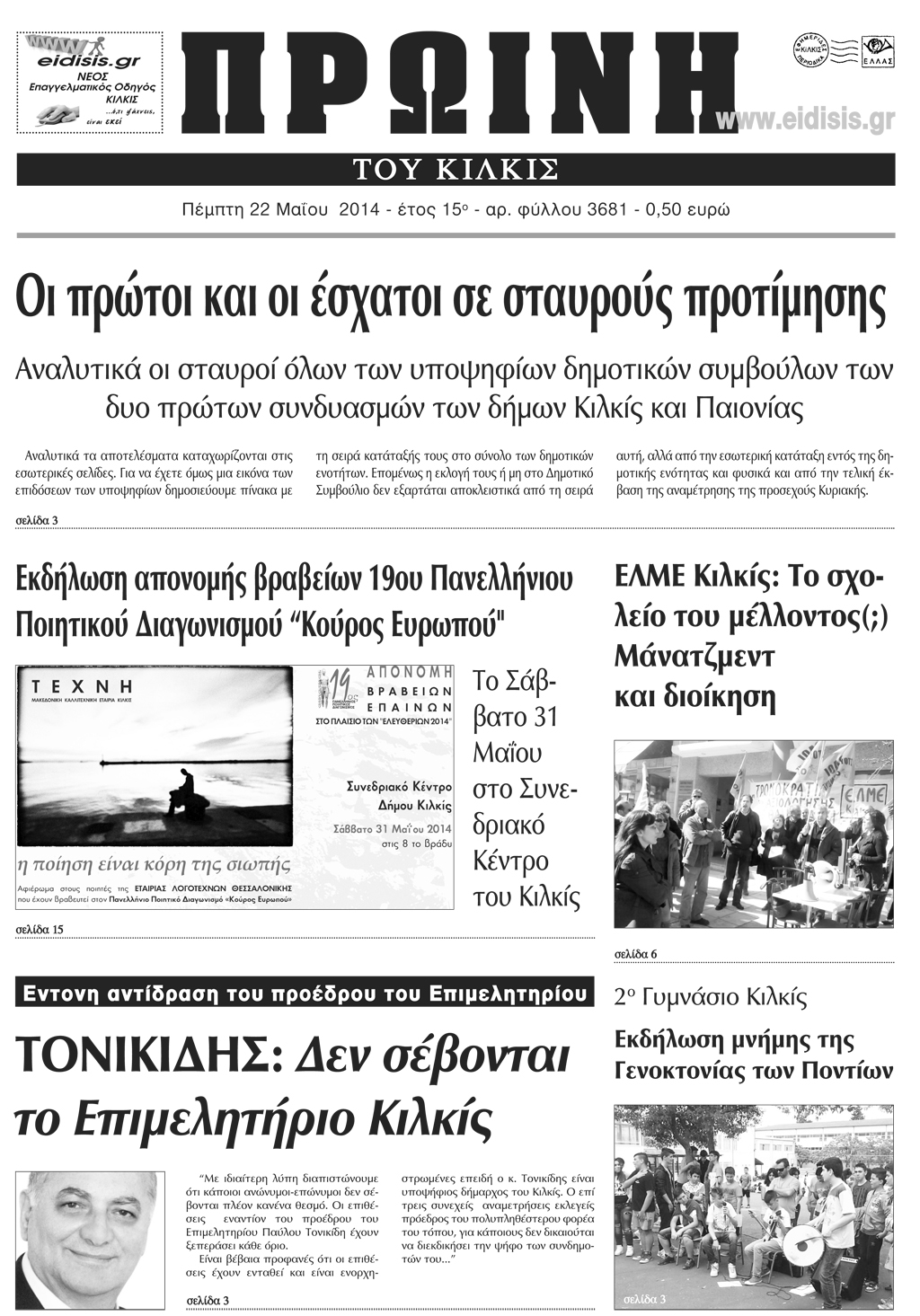 Πέντε χρόνια πριν. Διαβάστε τι έγραφε η καθημερινή εφημερίδα ΠΡΩΙΝΗ του Κιλκίς