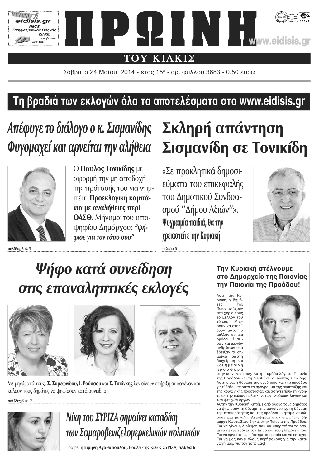 Πέντε χρόνια πριν. Διαβάστε τι έγραφε η καθημερινή εφημερίδα ΠΡΩΙΝΗ του Κιλκίς