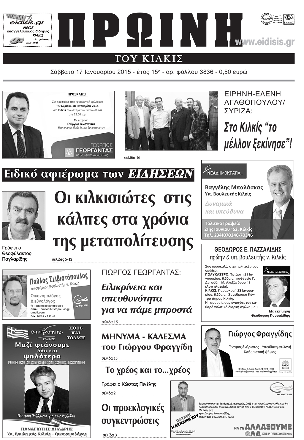 Πέντε χρόνια πριν. Διαβάστε τι έγραφε η καθημερινή εφημερίδα ΠΡΩΙΝΗ του Κιλκίς (17-1-2015)